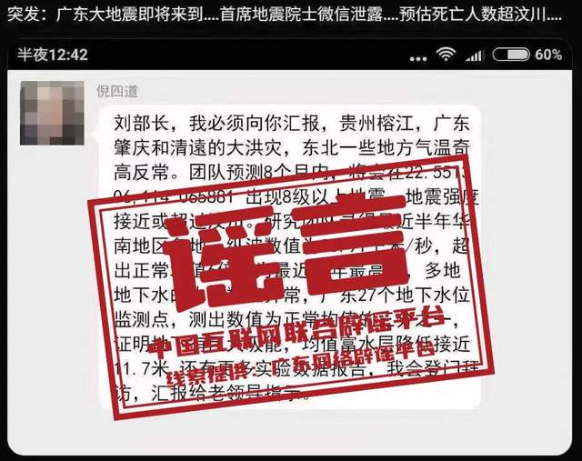辟謠:網(wǎng)傳院士預(yù)測(cè)廣東將發(fā)生8級(jí)以上大地震?謠言!已報(bào)警